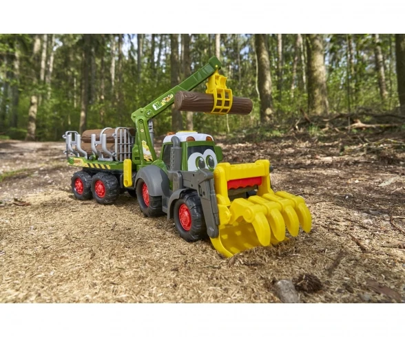 with a grip function in order to load the toy wooden tree trunks onto the trailer.