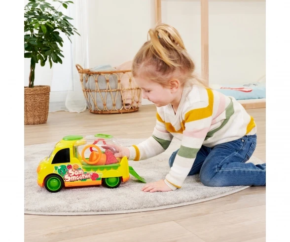 Once you’ve inserted the fruits into the matching holes, you can press the button on the roof of the vehicle to activate the mixing station. The ultimate toy for kids aged 1 and above!