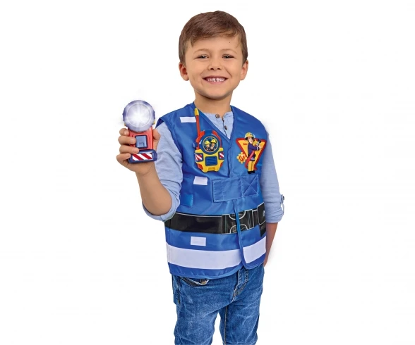 adventures from the Fireman Sam series. The blue vest can be put on in