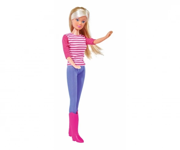 Evi wants to learn to ride her pony. Steffi is her riding instructor and gives her riding lessons. With her helmet and protective riding gear, Evi is ready for her first riding lesson. Steffi Love Horse Training is 29 cm tall and Evi is 12 cm tall – suitable for children aged 3 years and over.