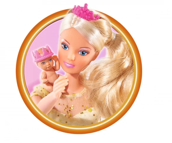 Steffi Princess is expecting a baby. In her royal outfit, Steffi is very excited to discover whether she’ll be placing a little prince or a little princess into the royal baby cradle. Once the baby is born, there is even a royal crown for the new arrival. Steffi LOVE Royal Baby is 29 cm tall and is suitable for children aged 3 years and over.